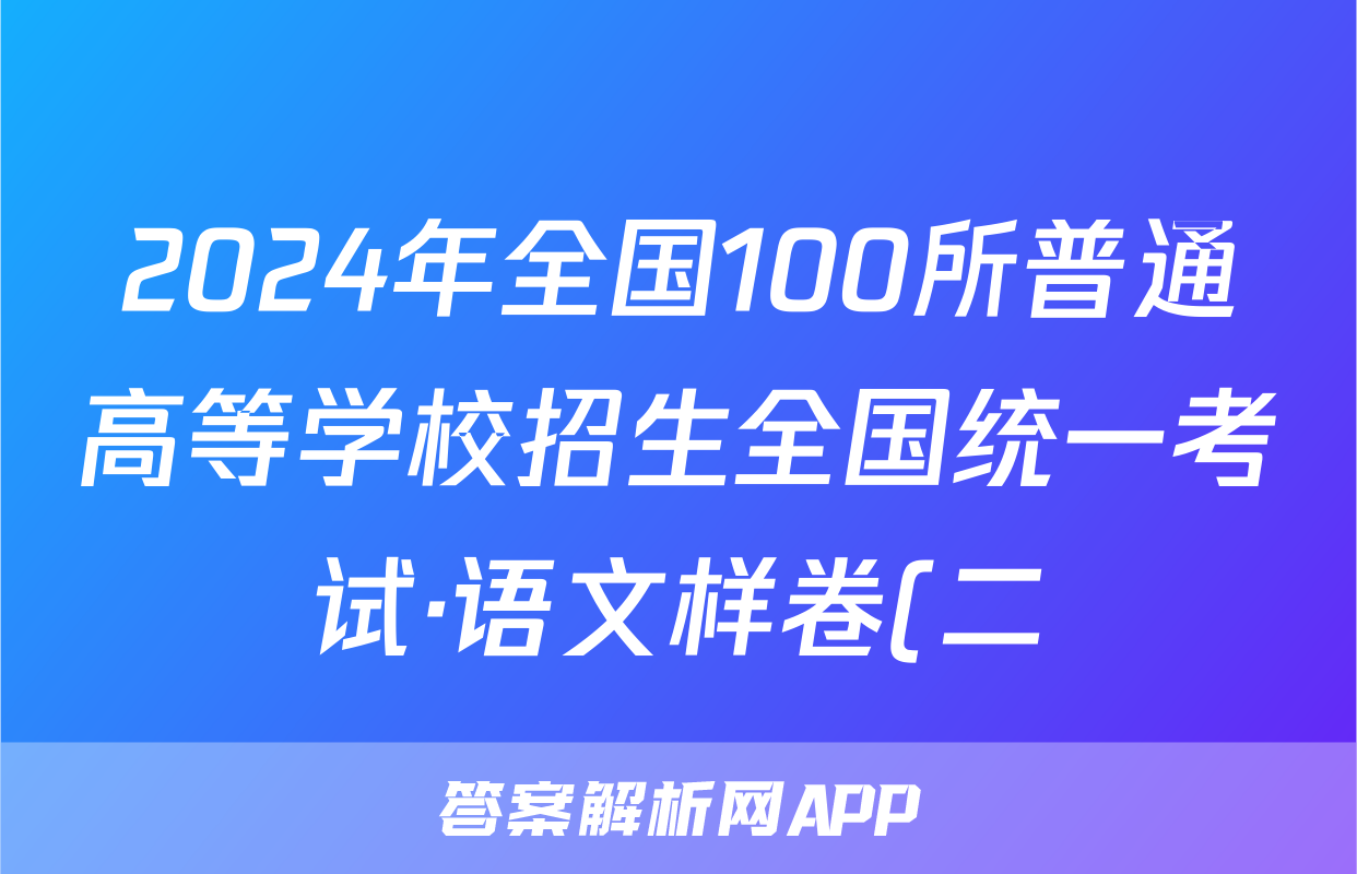 2024年全国100所普通高等学校招生全国统一考试·语文样卷(二)2[24·(新高考)高考样卷·语文·Y]答案正在持续更新,目前2025-2026全国100所名校答案网为大家整理了相关试题及答案,供大家查缺补漏,高效提升成绩。