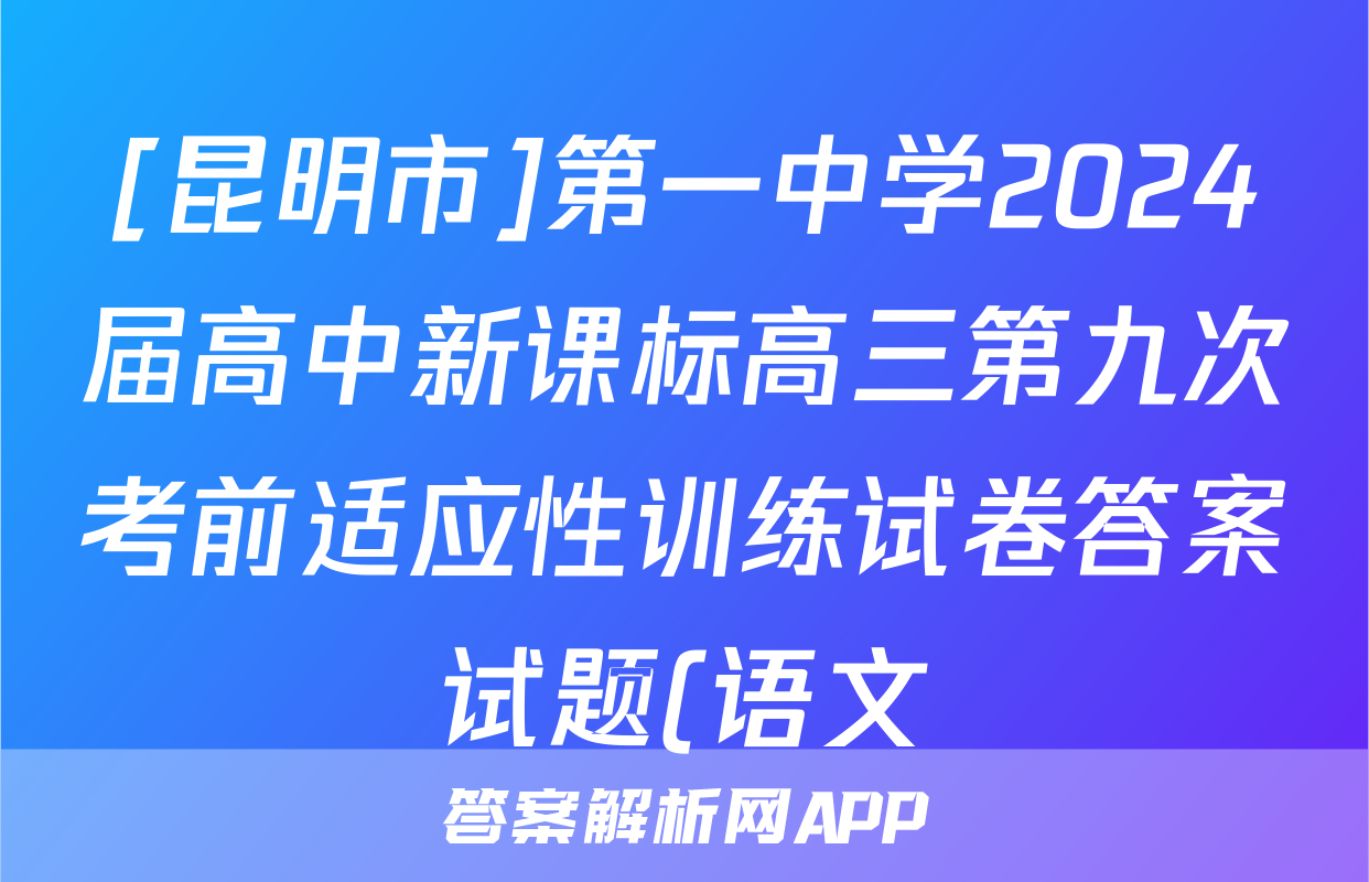 [昆明市]第一中学2024届高中新课标高三第九次考前适应性训练试卷答案试题(语文)正在持续更新,目前2025-2026全国100所名校答案网为大家整理了相关试题及答案,供大家查缺补漏,高效提升成绩。