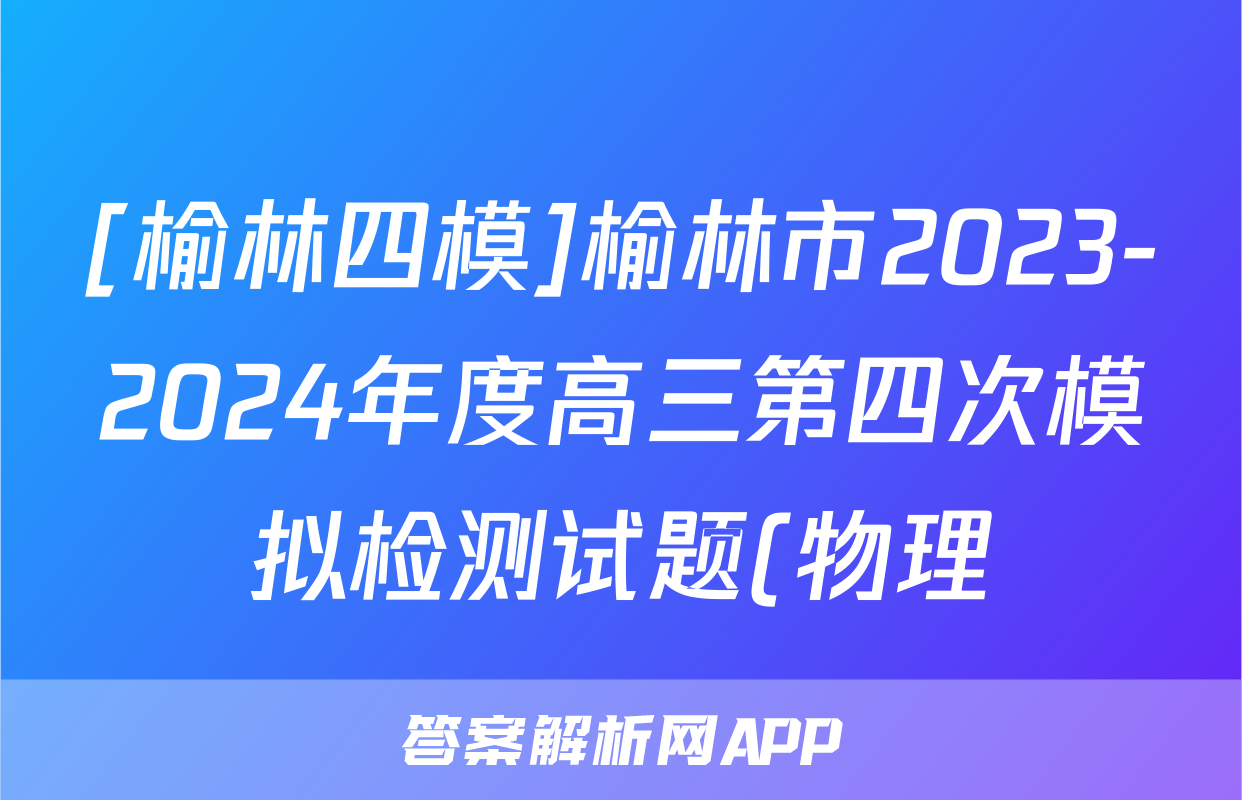 [榆林四模]榆林市2023-2024年度高三第四次模拟检测试题(物理)正在持续更新,目前2025-2026全国100所名校答案网为大家整理了相关试题及答案,供大家查缺补漏,高效提升成绩。