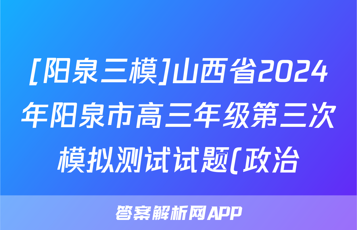 [阳泉三模]山西省2024年阳泉市高三年级第三次模拟测试试题(政治)