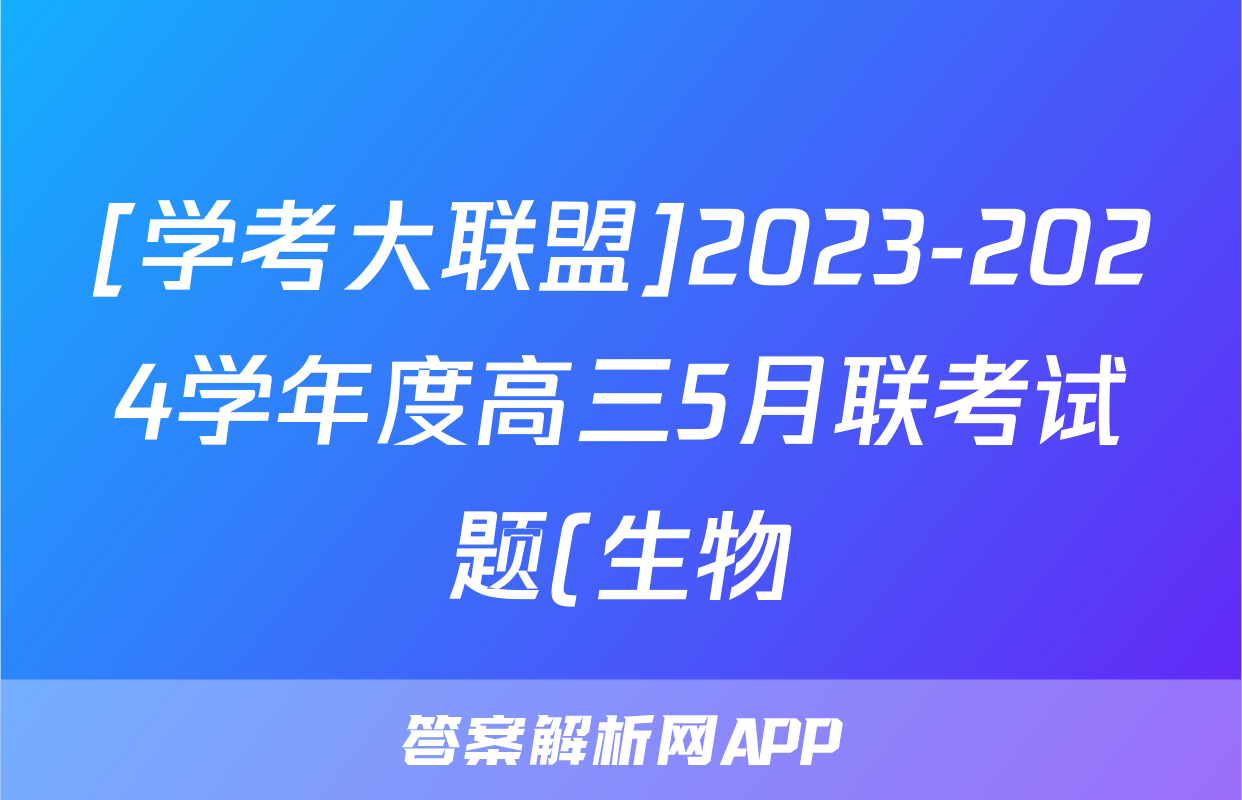 [学考大联盟]2023-2024学年度高三5月联考试题(生物)正在持续更新,目前2025-2026全国100所名校答案网为大家整理了相关试题及答案,供大家查缺补漏,高效提升成绩。