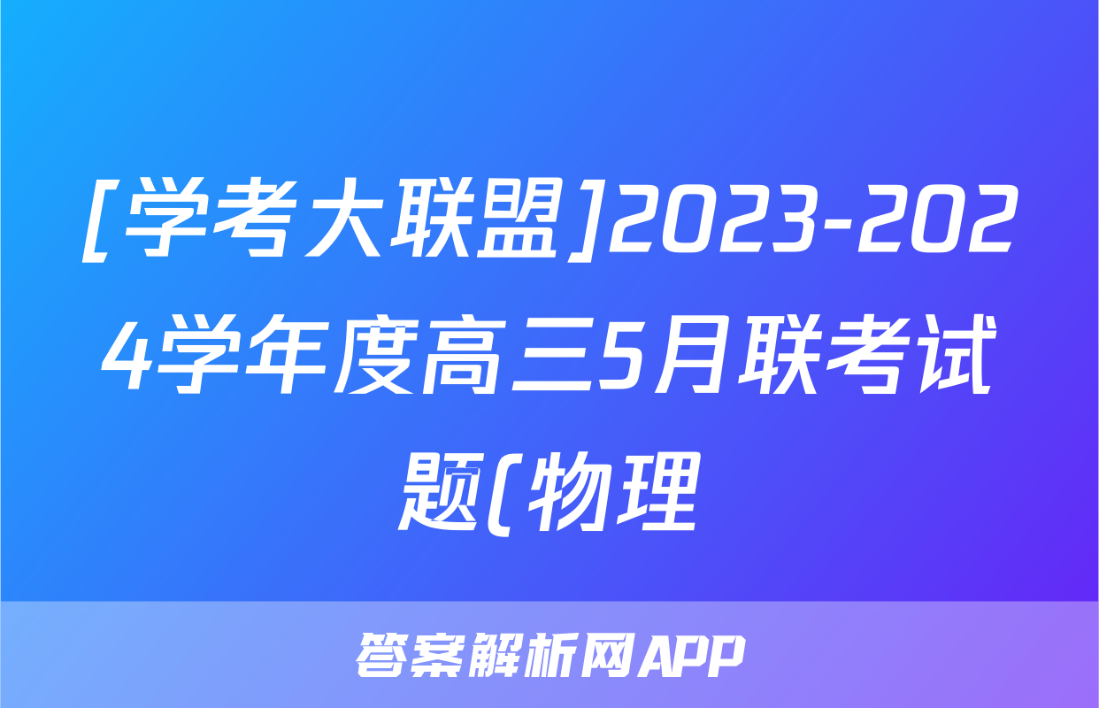 [学考大联盟]2023-2024学年度高三5月联考试题(物理)正在持续更新,目前2025-2026全国100所名校答案网为大家整理了相关试题及答案,供大家查缺补漏,高效提升成绩。