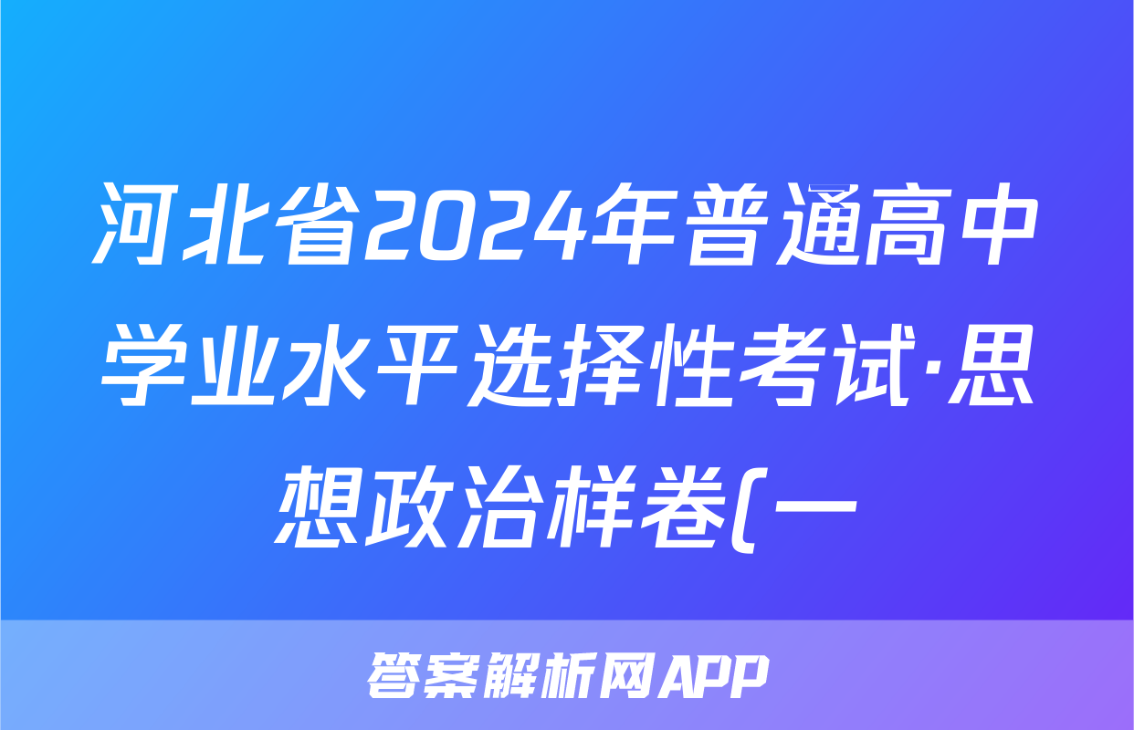 河北省2024年普通高中学业水平选择性考试·思想政治样卷(一)1[24·(新高考)高考样卷·思想政治·HEB]试题正在持续更新,目前2025-2026全国100所名校答案网为大家整理了相关试题及答案,供大家查缺补漏,高效提升成绩。