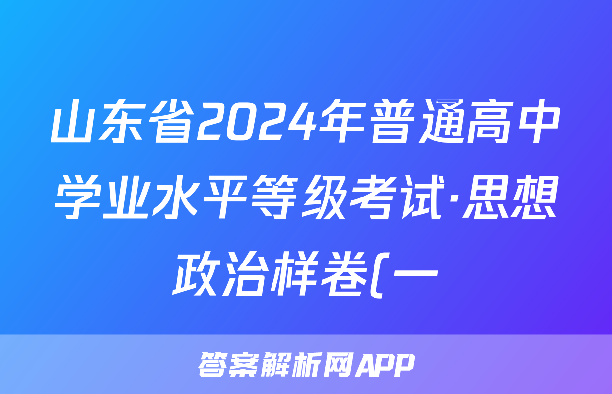 山东省2024年普通高中学业水平等级考试·思想政治样卷(一)1[24·(新高考)高考样卷·思想政治·SD]答案正在持续更新,目前2025-2026全国100所名校答案网为大家整理了相关试题及答案,供大家查缺补漏,高效提升成绩。