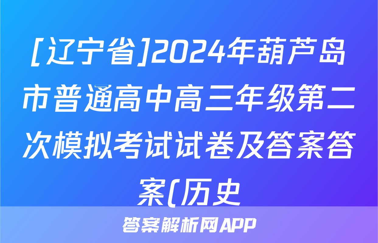 [辽宁省]2024年葫芦岛市普通高中高三年级第二次模拟考试试卷及答案答案(历史)正在持续更新,目前2025-2026全国100所名校答案网为大家整理了相关试题及答案,供大家查缺补漏,高效提升成绩。