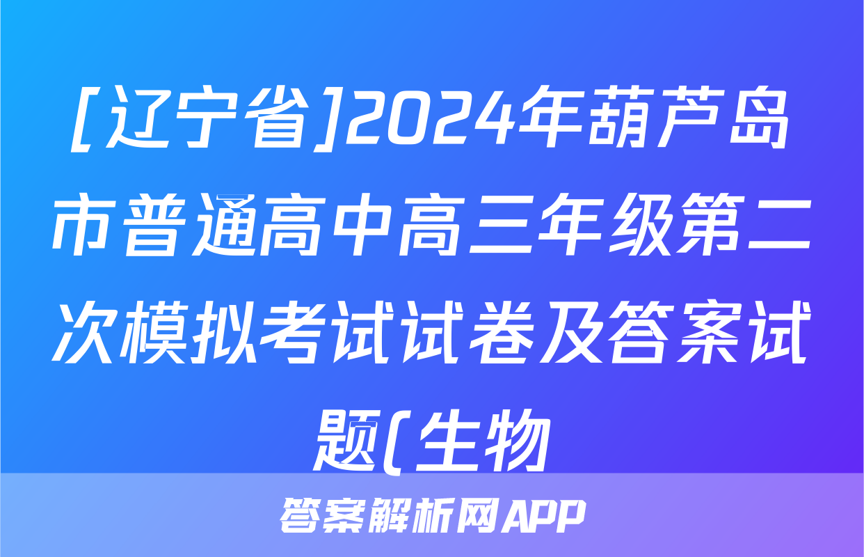 [辽宁省]2024年葫芦岛市普通高中高三年级第二次模拟考试试卷及答案试题(生物)正在持续更新,目前2025-2026全国100所名校答案网为大家整理了相关试题及答案,供大家查缺补漏,高效提升成绩。