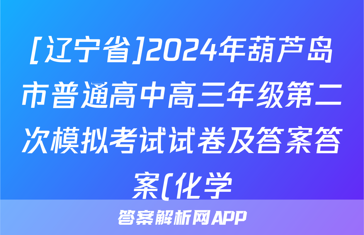[辽宁省]2024年葫芦岛市普通高中高三年级第二次模拟考试试卷及答案答案(化学)正在持续更新,目前2025-2026全国100所名校答案网为大家整理了相关试题及答案,供大家查缺补漏,高效提升成绩。