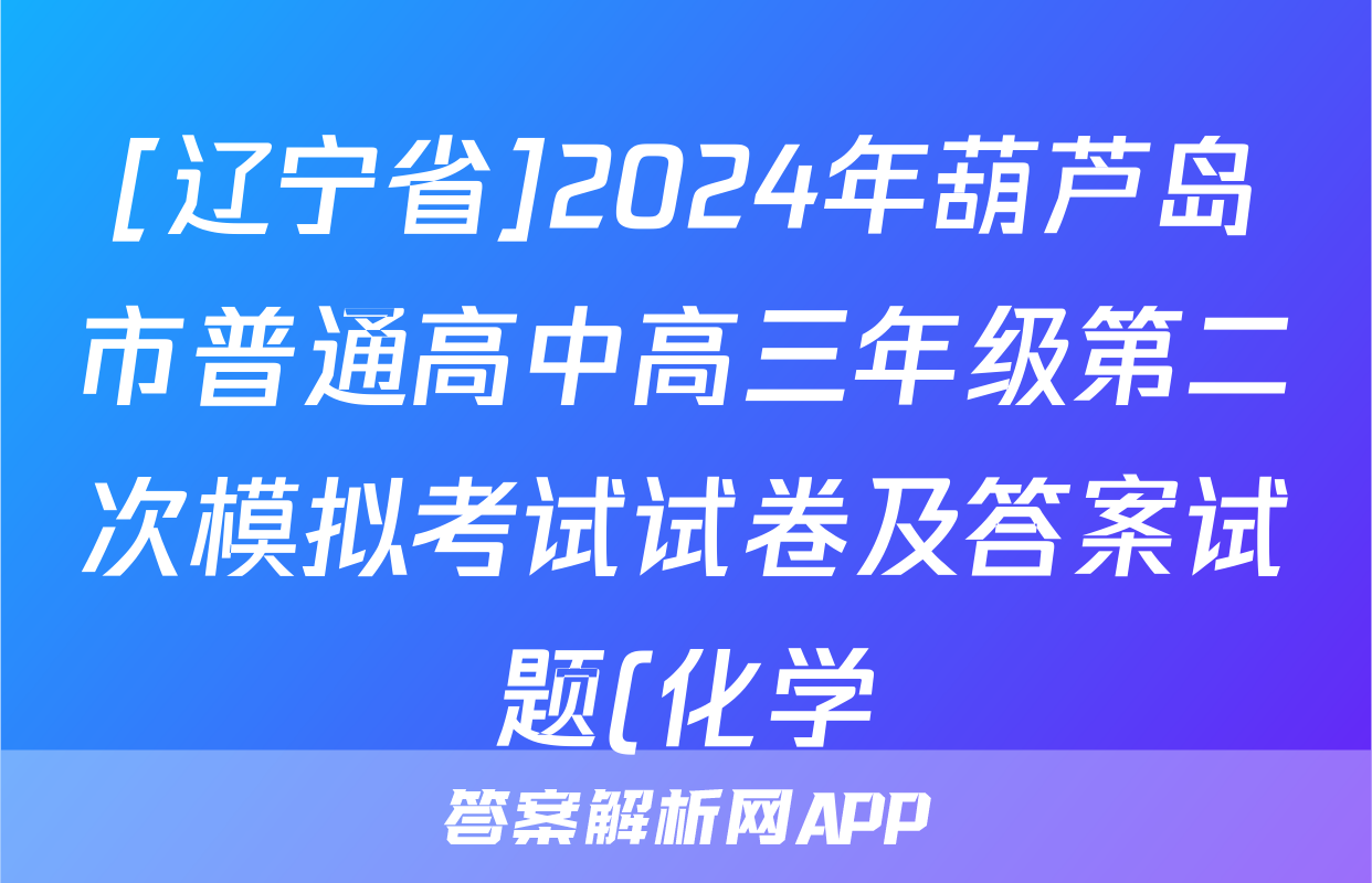 [辽宁省]2024年葫芦岛市普通高中高三年级第二次模拟考试试卷及答案试题(化学)正在持续更新,目前2025-2026全国100所名校答案网为大家整理了相关试题及答案,供大家查缺补漏,高效提升成绩。