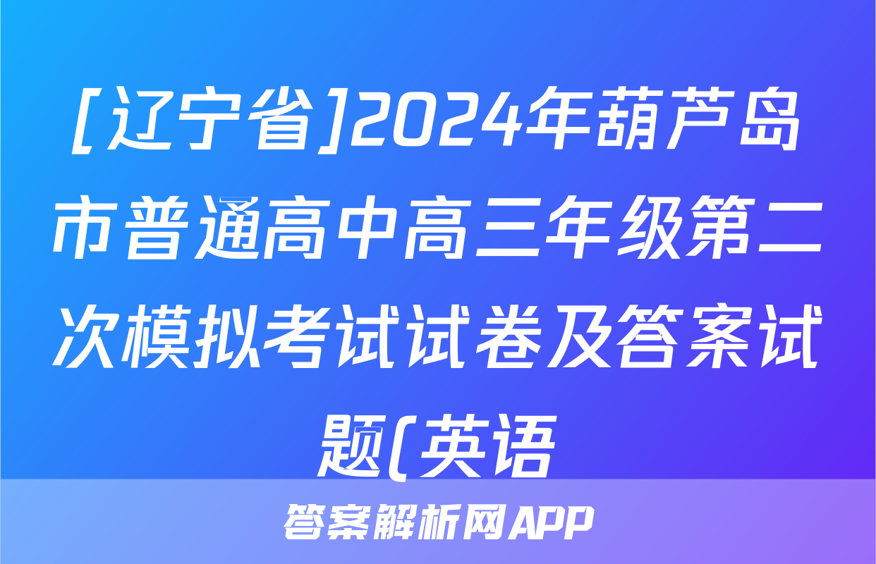 [辽宁省]2024年葫芦岛市普通高中高三年级第二次模拟考试试卷及答案试题(英语)正在持续更新,目前2025-2026全国100所名校答案网为大家整理了相关试题及答案,供大家查缺补漏,高效提升成绩。