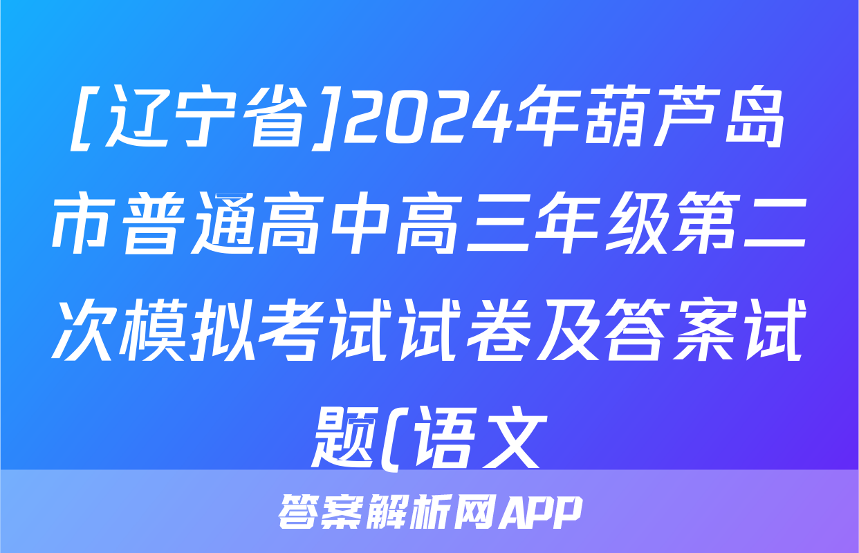 [辽宁省]2024年葫芦岛市普通高中高三年级第二次模拟考试试卷及答案试题(语文)正在持续更新,目前2025-2026全国100所名校答案网为大家整理了相关试题及答案,供大家查缺补漏,高效提升成绩。