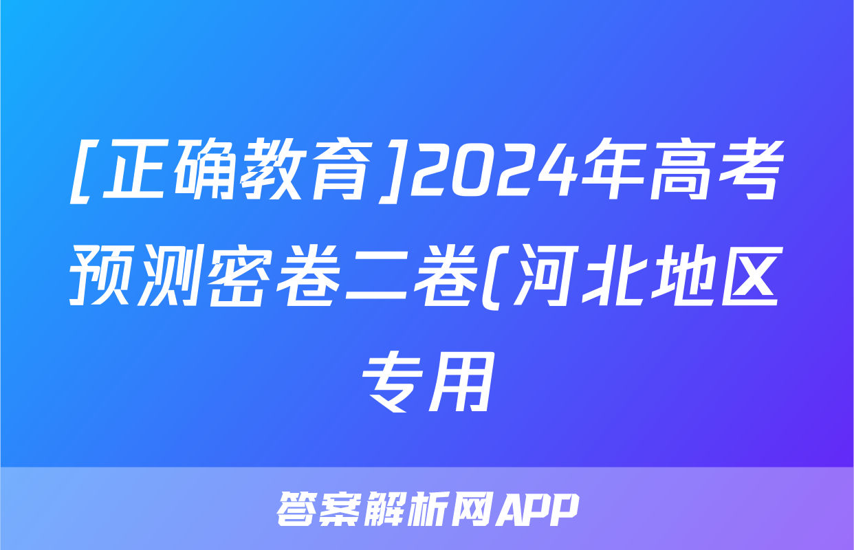 [正确教育]2024年高考预测密卷二卷(河北地区专用)物理(河北)答案正在持续更新,目前2025-2026全国100所名校答案网为大家整理了相关试题及答案,供大家查缺补漏,高效提升成绩。