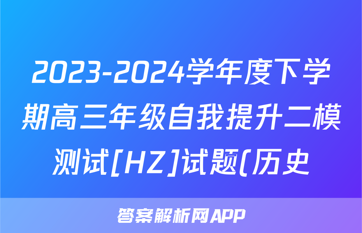 2023-2024学年度下学期高三年级自我提升二模测试[HZ]试题(历史)正在持续更新,目前2025-2026全国100所名校答案网为大家整理了相关试题及答案,供大家查缺补漏,高效提升成绩。