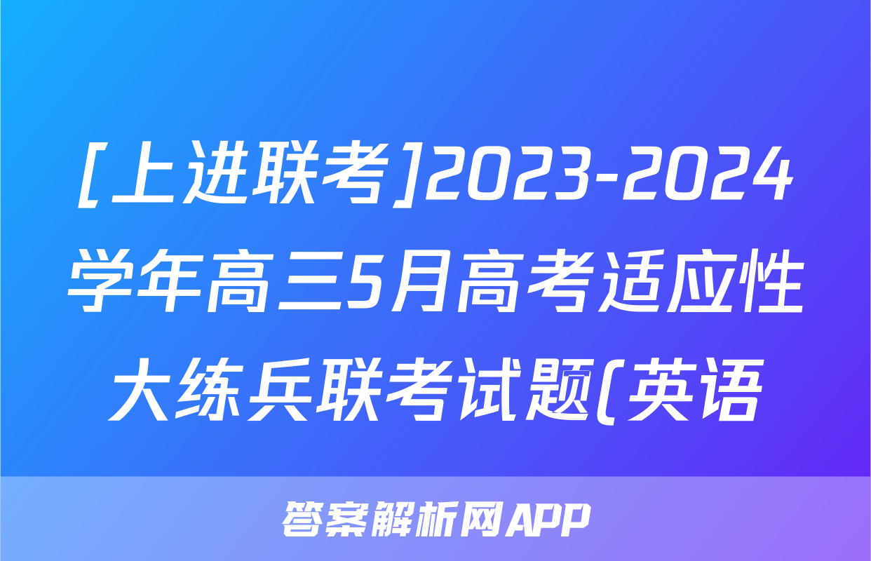[上进联考]2023-2024学年高三5月高考适应性大练兵联考试题(英语)正在持续更新,目前2025-2026全国100所名校答案网为大家整理了相关试题及答案,供大家查缺补漏,高效提升成绩。