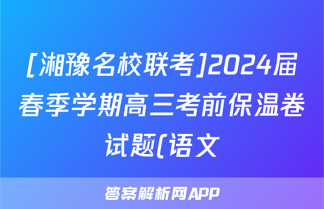 [湘豫名校联考]2024届春季学期高三考前保温卷试题(语文)正在持续更新,目前2025-2026全国100所名校答案网为大家整理了相关试题及答案,供大家查缺补漏,高效提升成绩。