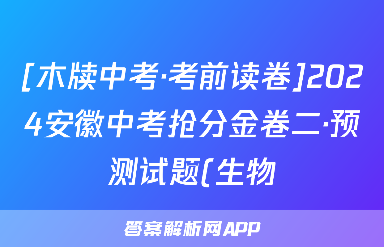[木牍中考·考前读卷]2024安徽中考抢分金卷二·预测试题(生物)正在持续更新,目前2025-2026全国100所名校答案网为大家整理了相关试题及答案,供大家查缺补漏,高效提升成绩。