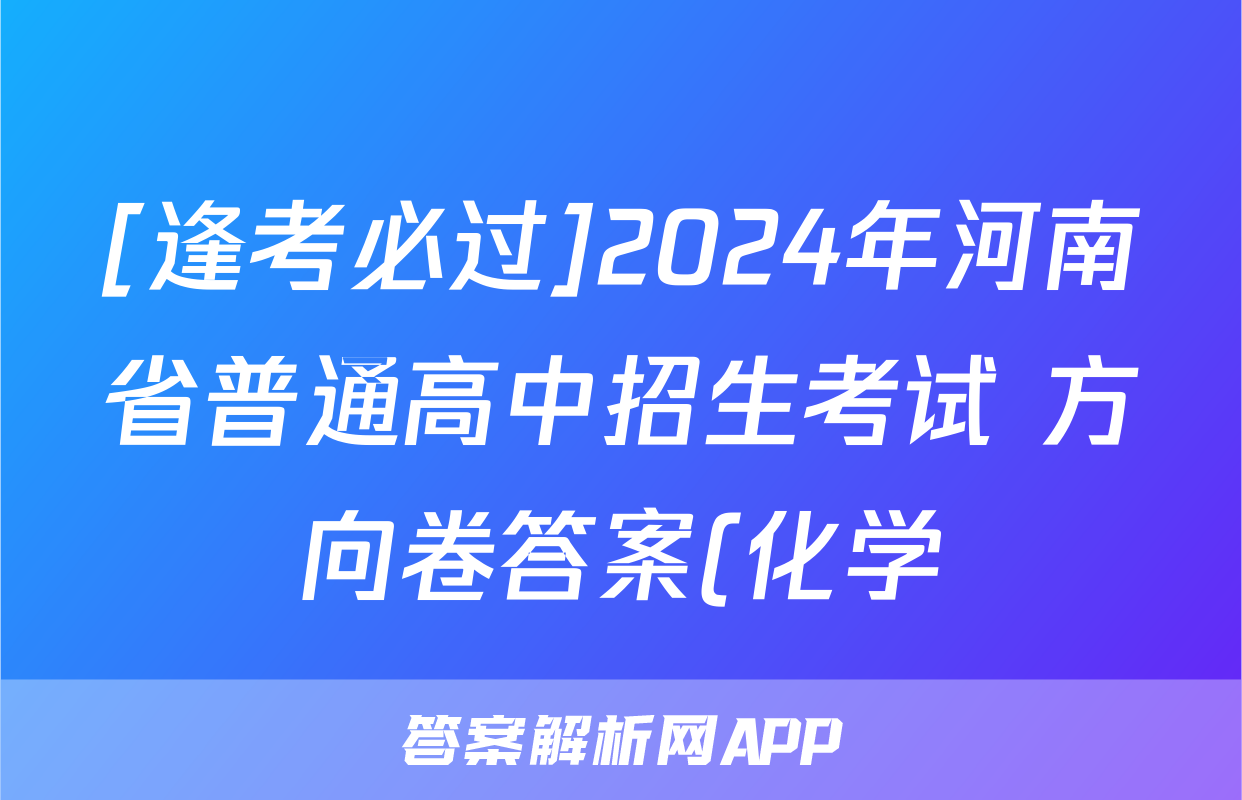 [逢考必过]2024年河南省普通高中招生考试 方向卷答案(化学)正在持续更新,目前2025-2026全国100所名校答案网为大家整理了相关试题及答案,供大家查缺补漏,高效提升成绩。