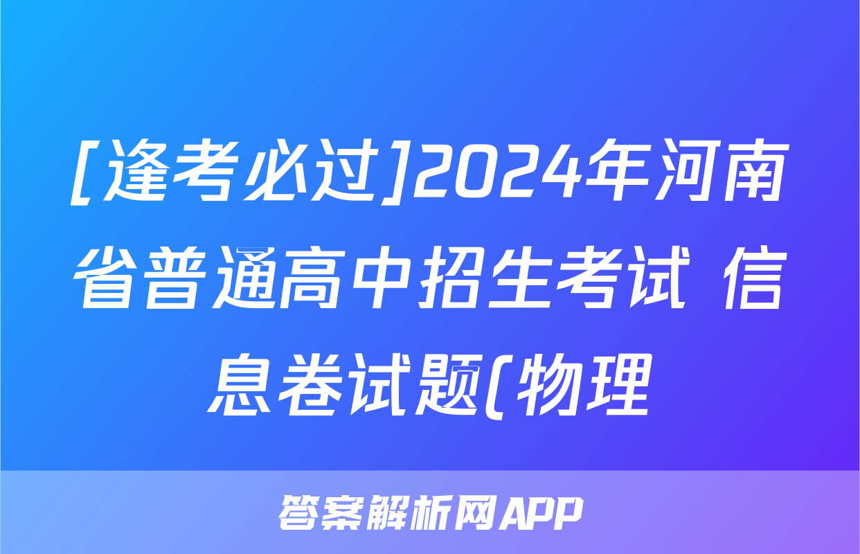 [逢考必过]2024年河南省普通高中招生考试 信息卷试题(物理)正在持续更新,目前2025-2026全国100所名校答案网为大家整理了相关试题及答案,供大家查缺补漏,高效提升成绩。