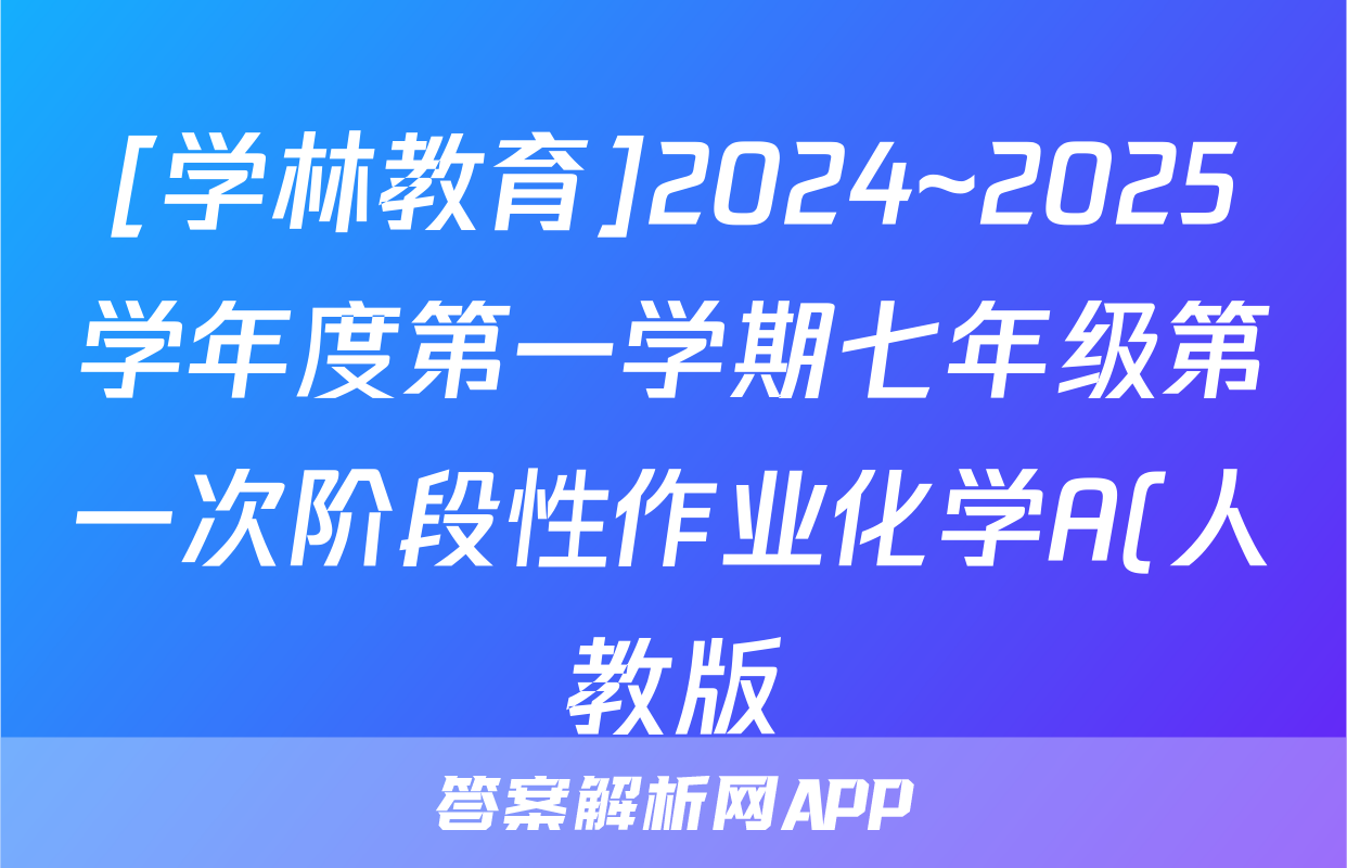 [学林教育]2024~2025学年度第一学期七年级第一次阶段性作业化学A(人教版)试题正在持续更新,目前2025-2026全国100所名校答案网为大家整理了相关试题及答案,供大家查缺补漏,高效提升成绩。