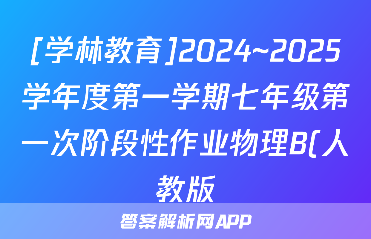 [学林教育]2024~2025学年度第一学期七年级第一次阶段性作业物理B(人教版)答案正在持续更新,目前2025-2026全国100所名校答案网为大家整理了相关试题及答案,供大家查缺补漏,高效提升成绩。