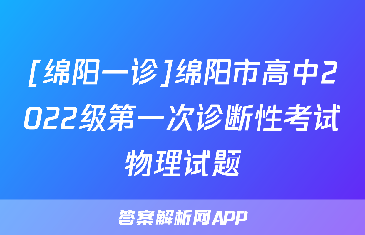 [绵阳一诊]绵阳市高中2022级第一次诊断性考试物理试题正在持续更新,目前2025-2026全国100所名校答案网为大家整理了相关试题及答案,供大家查缺补漏,高效提升成绩。