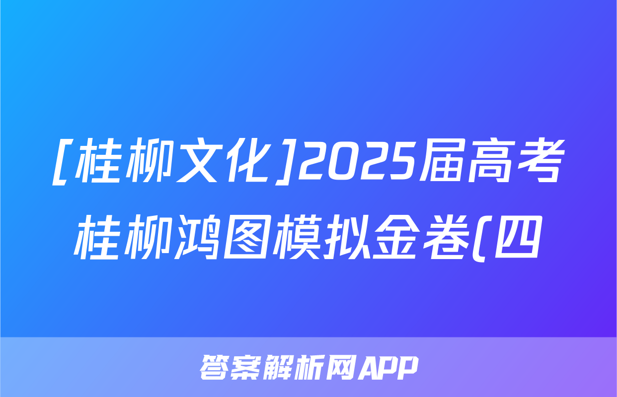 [桂柳文化]2025届高考桂柳鸿图模拟金卷(四)4历史试题正在持续更新,目前2025-2026全国100所名校答案网为大家整理了相关试题及答案,供大家查缺补漏,高效提升成绩。